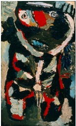 Les yeux rivés sur l’immense tableau « Tête imaginaire » de Karel Appel (1955), la médiatrice évoque l’influence de l’art brut sur l’art contemporain et notamment sur ce peintre du groupe CoBrA (qui rassemble dès 1948 des peintres de Copenhague, Bruxelles et Amsterdam). Ce tableau fait à la fois « un peu rire, car nous pouvons croire que l’auteur est un enfant, mais il fait surtout peur, car il évoque la guerre, son absurdité et ses traumatismes ». Ainsi commence notre exposition vouée principalement à l’art brut, un art un peu négligé, mais qui frappe les visiteurs du LAM.