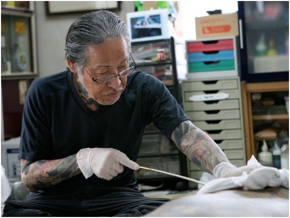 Tout d’abord, ce sont les aiguilles avec de l’encre de charbon et des pigments de couleurs qui ont étaient utilisées, notamment au Japon. Les aiguilles utilisées n’étaient pas stérilisées, ce qui transmettait les maladies. L’outil est une sorte de manche en pointe autrefois fait en bambou, au bout duquel sont insérées ces aiguilles. Leur nombre dépend de la taille du tatouage. Suivant le type de travail et la partie du corps concernée, le tatoueur peut utiliser de 5 à 36 aiguilles.