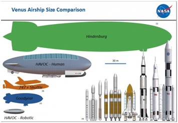 Pourtant, le projet HAVOC, Hight Altitude Venus Operational Concept, a bel et bien vu le jour. D’après les scientifiques, ce n’est pas sur le sol de Vénus que l’homme pourrait s’installer mais à 50 km d’altitude, dans l’atmosphère de la planète ! Les cités imaginées par l’équipe, avec peut-être comme source d’inspiration la Cité des Nuages de Bespin dans Star Wars, seraient maintenues dans le ciel grâce à d’énormes dirigeables capables de résister aux rafales incessantes parcourant les cieux à 100 m/s.