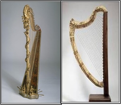 Je suis une harpe, l’un des plus anciens instruments de musique, un instrument à cordes pincées de forme triangulaire, et munie de 36 cordes tendues de longueurs variables, dont les plus courtes émettent les plus aiguës.
